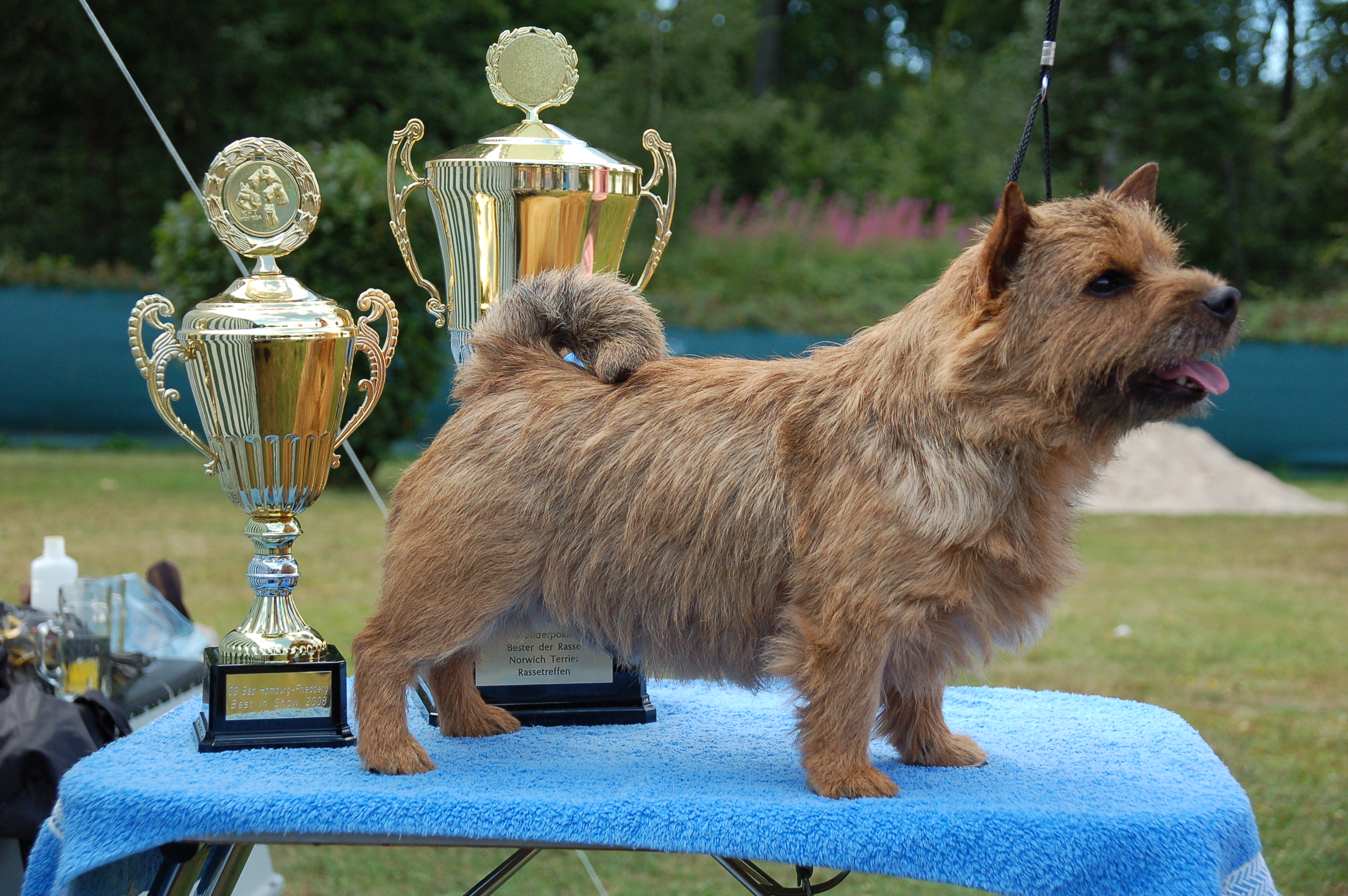 Angus ist der 1. Sohn von Beauty. Er kam unter schwierigen Umständen zur Welt und wir kämpften hart um sein Leben. Danach war an eine Abgabe nicht mehr zu denken! Auch wenn wir eigentlich keinen Rüden behalten wollten. Angus ist und bleibt mein "Baby". Glücklicherweise hat er sich zu einem wunderschönen, kompakten Rüden gemausert, so dass ich ihn sehr erfolgreich auf Ausstellungen präsentieren kann. Er hat bereits mehrere Championtitel gewinnen können. Auch in die Zucht ist er gut gestartet und hat schon ein paar schöne Kinder gezeugt. Angus ist ein Macho mit goldenem Herz. Er ist kein Schmusehund. Gekrault werden wenn er Lust hat, dass ist aber toll. Gerne gibt er den Beschützer der Familie und des Hauses, jedoch wird jeder Besucher herzlichst begrüßt. Fremde Rüden werden von Angus schon mal angeknurrt, bei Welpen und Kindern wird er aber weich. Einen besseren und geduldigeren Spielkameraden kann man kaum finden. Ist Angus normalerweise auch etwas ungestüm, so wird er bei den Welpen auf einmal ganz vorsichtig und behutsam. Angus ist ein toller Kamerad mit ganz eigenem Charakter. |