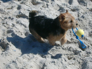 Wir, dass sind mein Mann Uwe, meine Tochter Jasmin, unsere Hunde, die Katze und ich, leben in einem gemütlichen Einfamilienhaus am Rande des Odenwalds. Auf die Norwich Terrier kamen wir im Jahr 2003 nach einer kleinen Excursion durch die Labrador-Züchterwelt. Denn bis dahin hieß mein Motto „ ein Hund fängt da an, wo ich ohne bücken an das Halsband komme“. Nachdem wir aber ohne Erfolg nach einer gelben Labrador-Hündin, die vor allem gesund und nicht völlig überzüchtet sein sollte, in ganz Deutschland gesucht hatten, boten uns die Eltern meines Mannes an, einen ihrer älteren Rüden zu übernehmen. Ein Norwich Terrier!